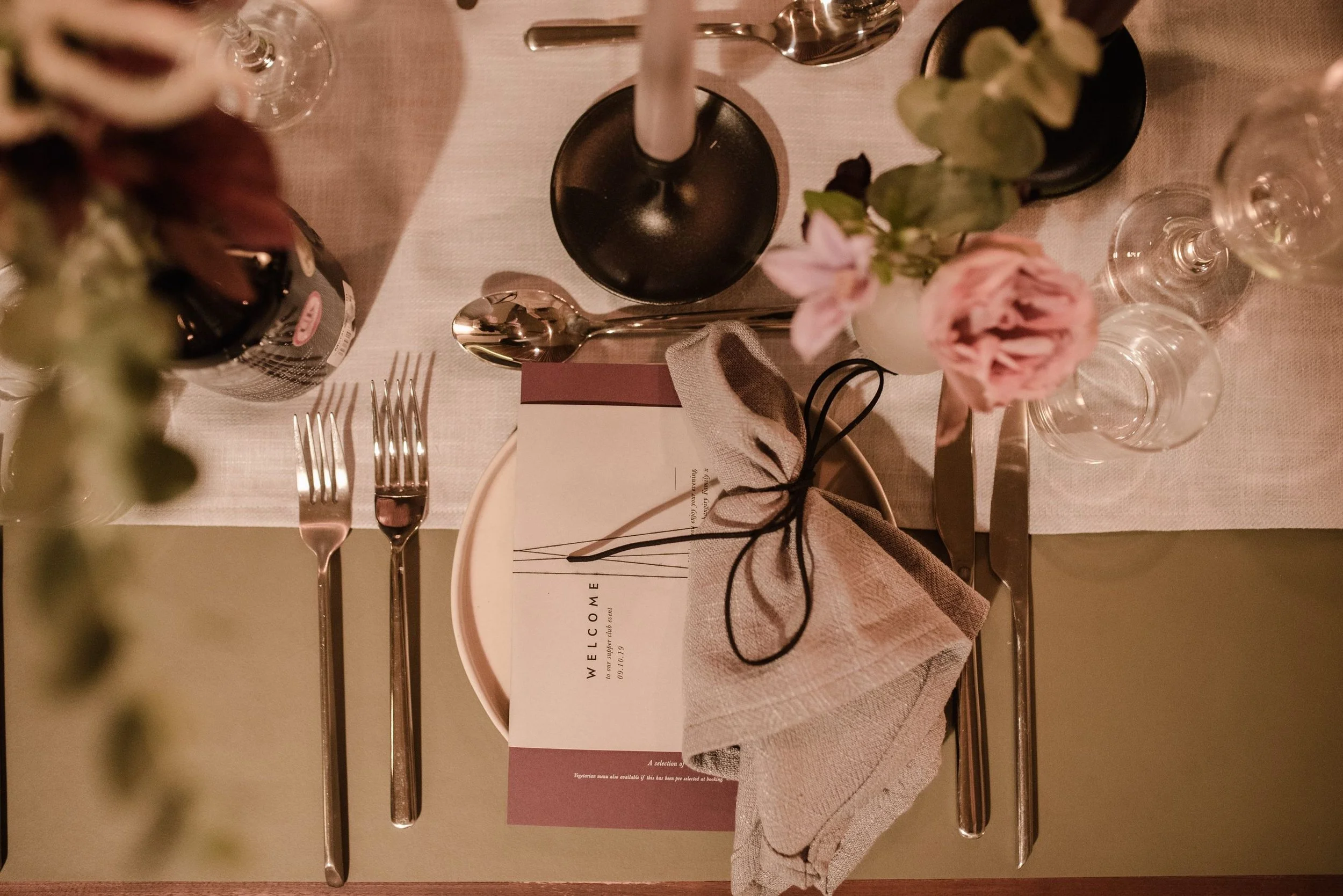 Event styling: As part of our offering I organised, styled and produced creative for a supper club evening in London. This included floral and table arrangements, signage and menu design.