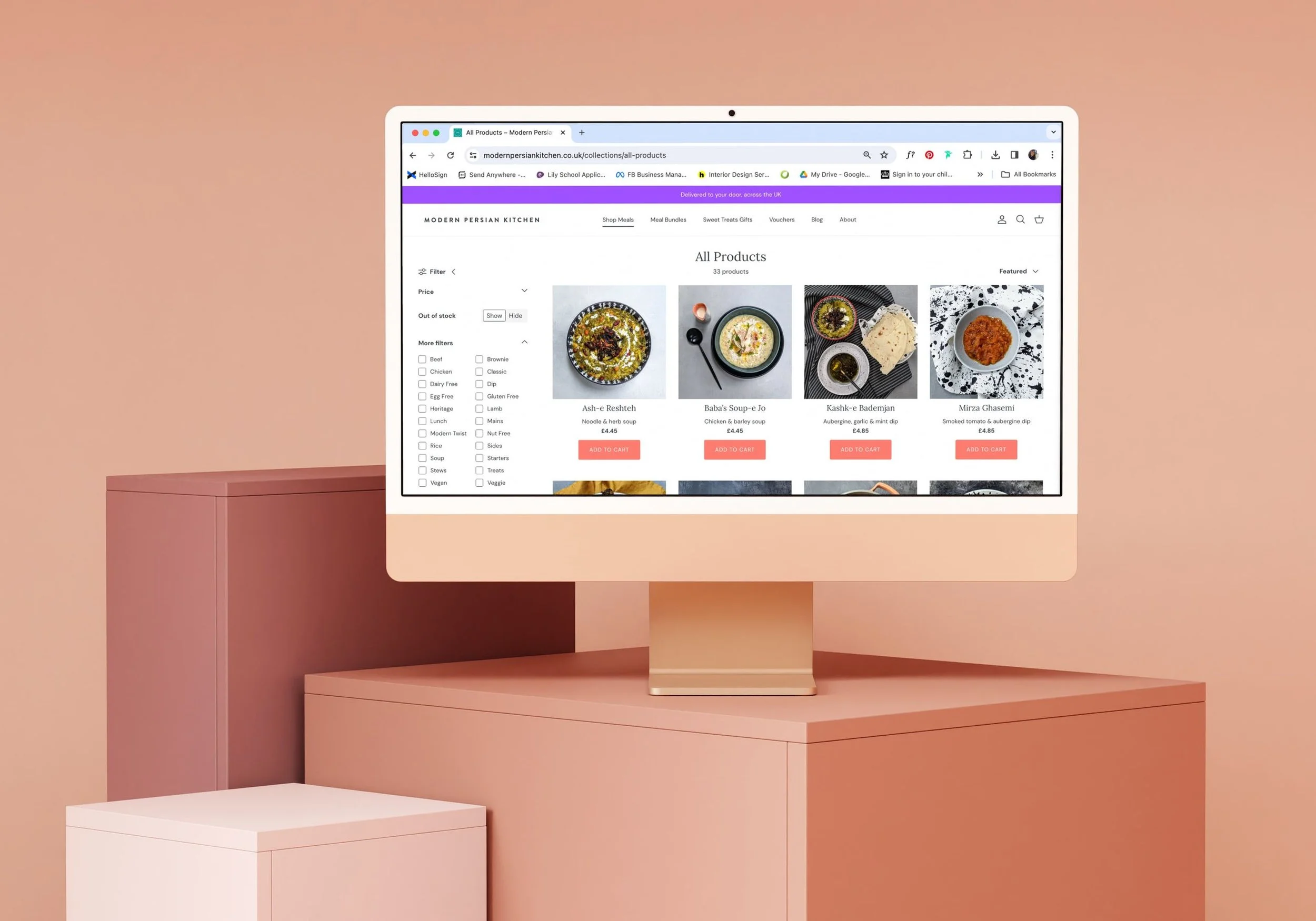 Direct to customer sales were a large proportion of the MPK offering therefore having a smooth customer journey to cart is key. Recognising this I moved platform to E-commerce specialist platform Shopify to help Modern Persian Kitchen grow and provide a more effective offering.