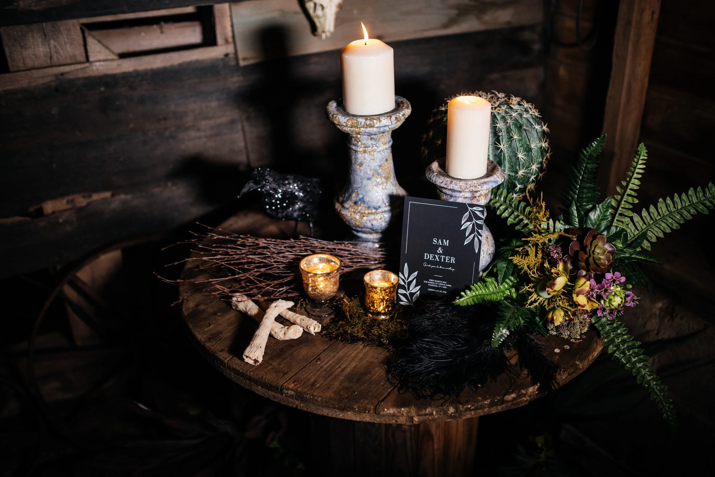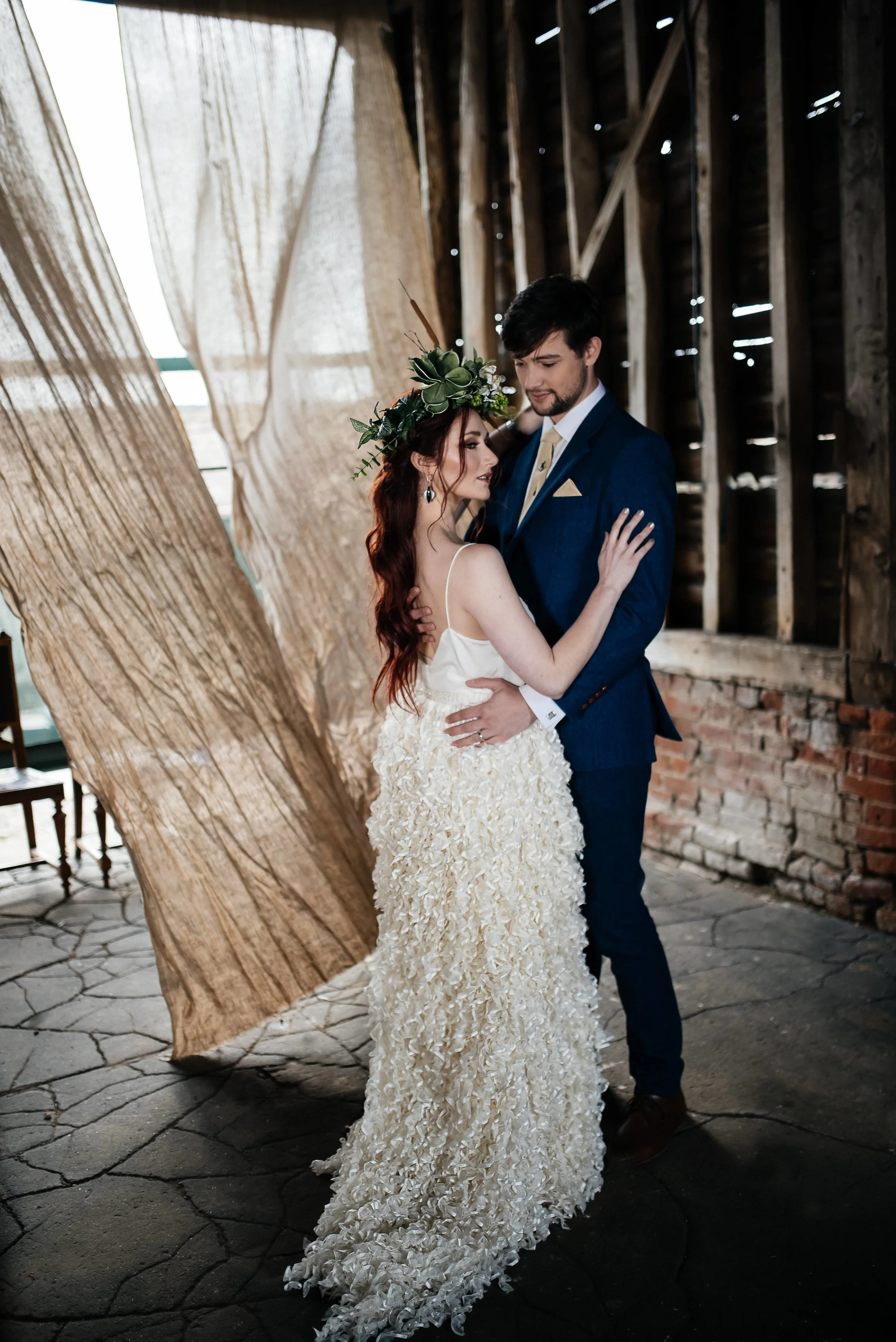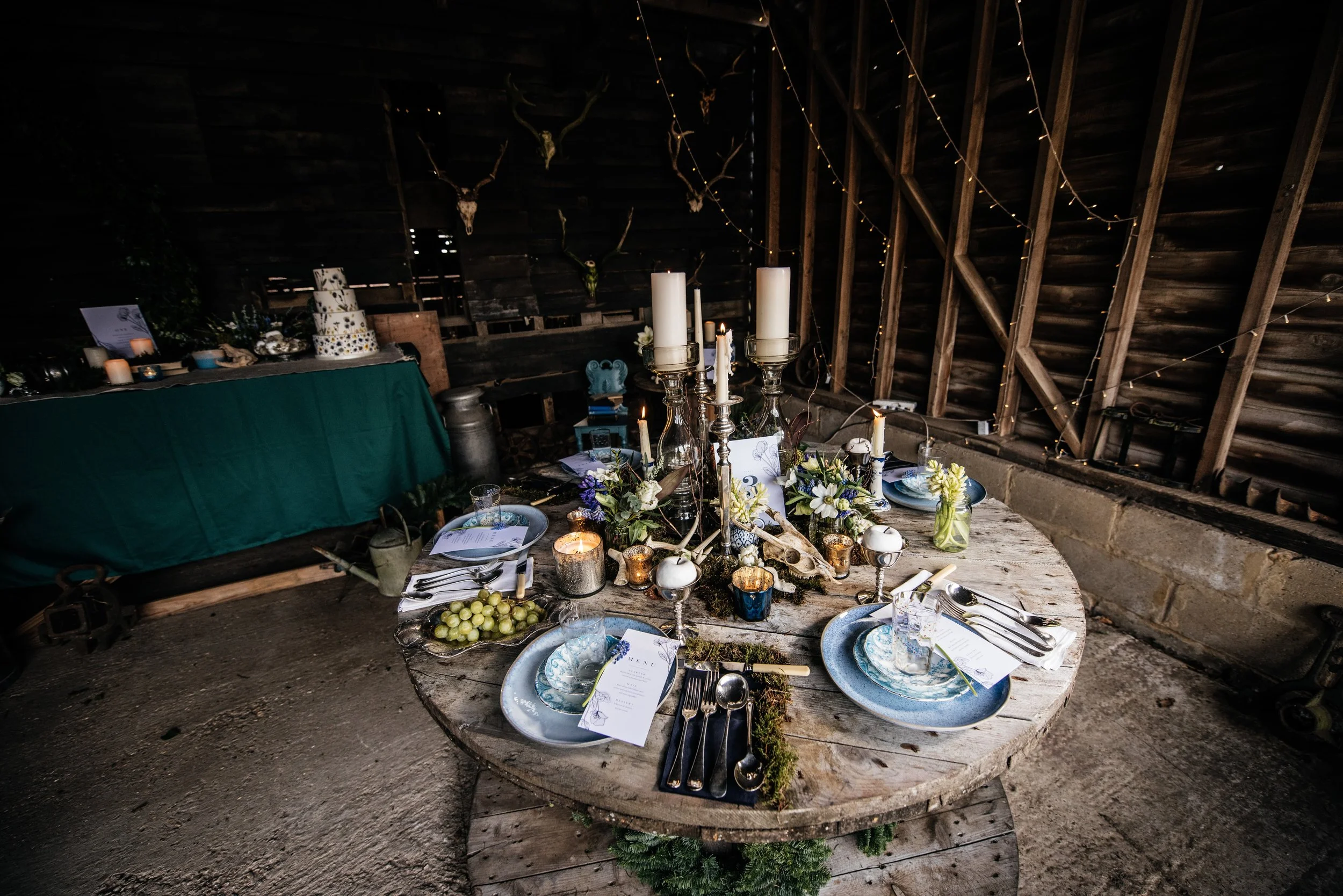 The Barns at Lodge Farm is a new wedding and events venue where several barns are currently being renovated, and I wanted to document their dereliction and history/romance before they are refurbished. The ethos of the venue fit perfectly with the key influences for the shoot, and the changing landscape of the fields throughout the year are an idyllic backdrop for the Celebration of the Seasons.