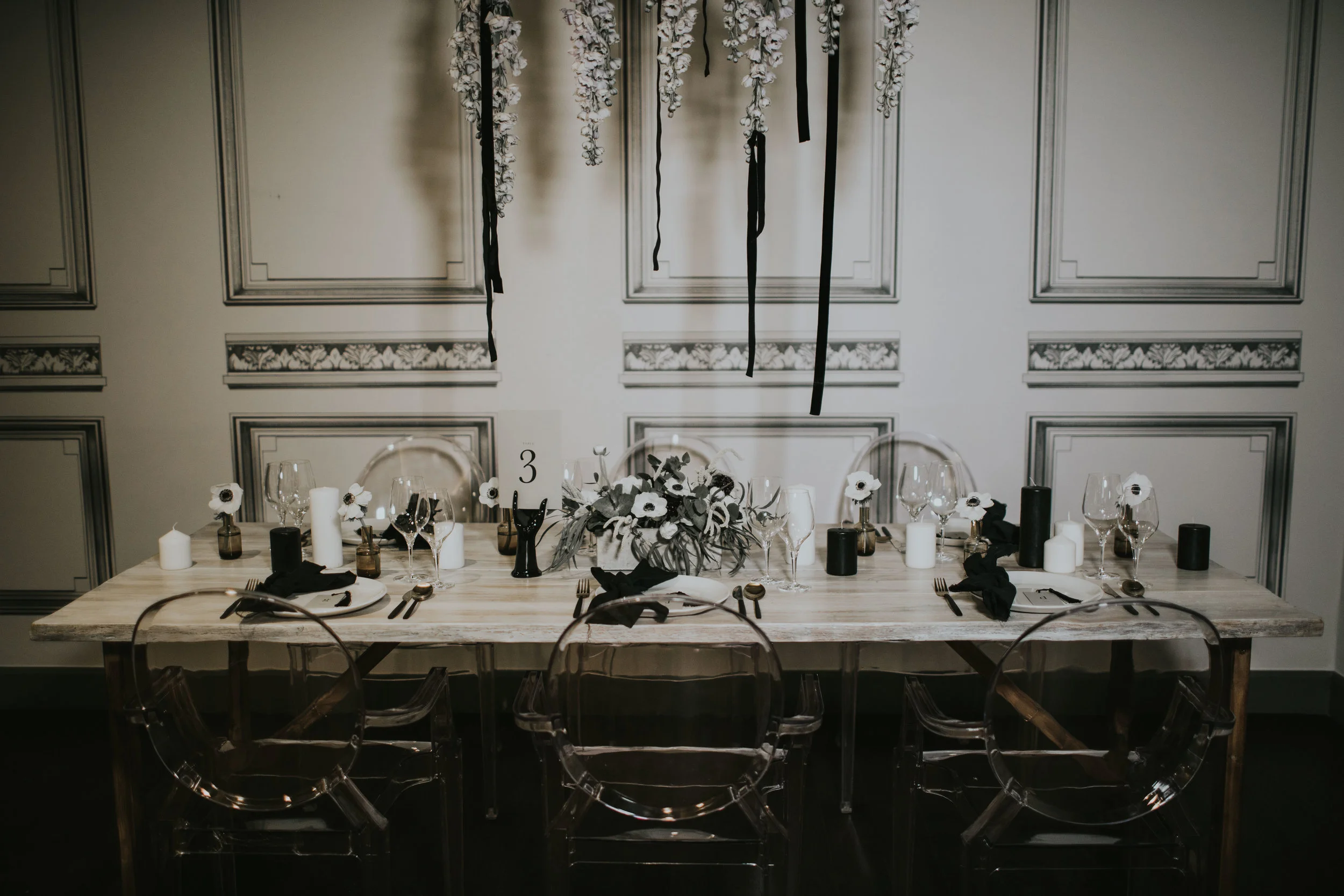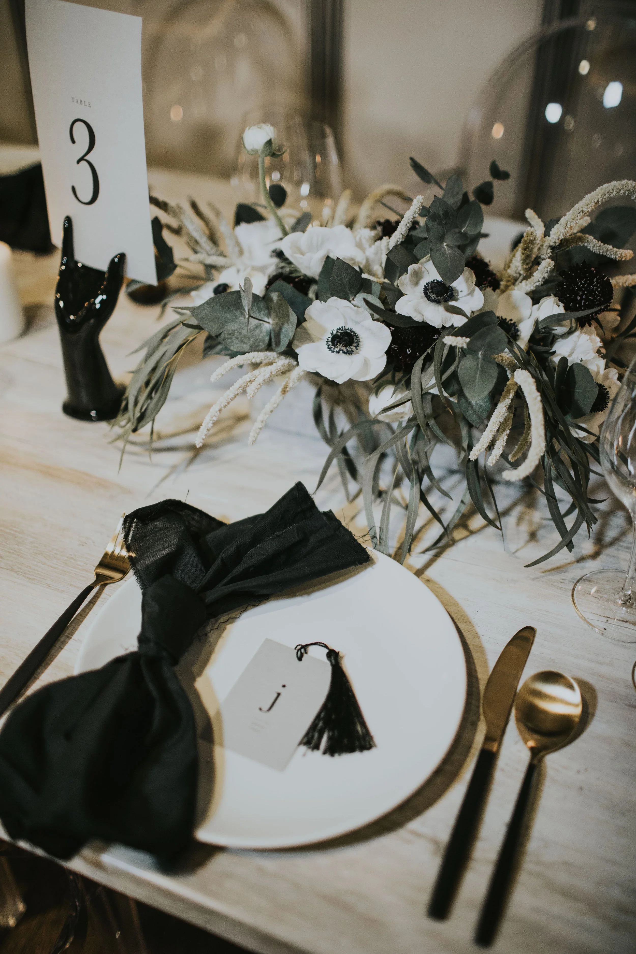 Monochrome is a colour palette choice that is timeless and forever chic. You really can’t go wrong. Working with a monochrome theme each element was carefully curated, you could say minimal but each piece is a statement in its own right that deserves appreciation. As wedding suppliers, we see all the trends within the industry for our businesses but wanted to flex our creative muscles with pieces/designs that when combined created something fresh.