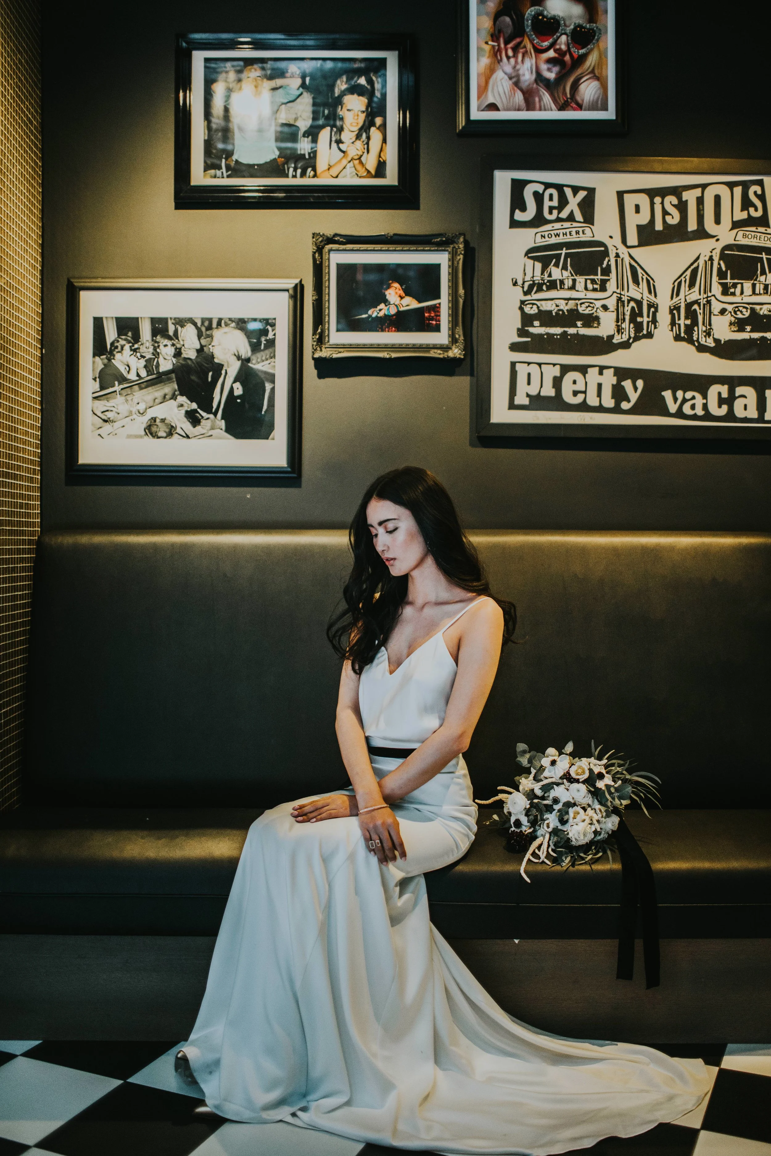 Alexandra Merri from The Bijou Bride: For this wedding inspiration shoot I wanted to create something new with a stylish edge that could stand the test of time. The Curtain was the perfect space located in East London it has the contemporary cool vibes down to a T; industrial chic views over buzzing London and the tromp l’oeil walls in their event space couldn’t have been more fitting.
