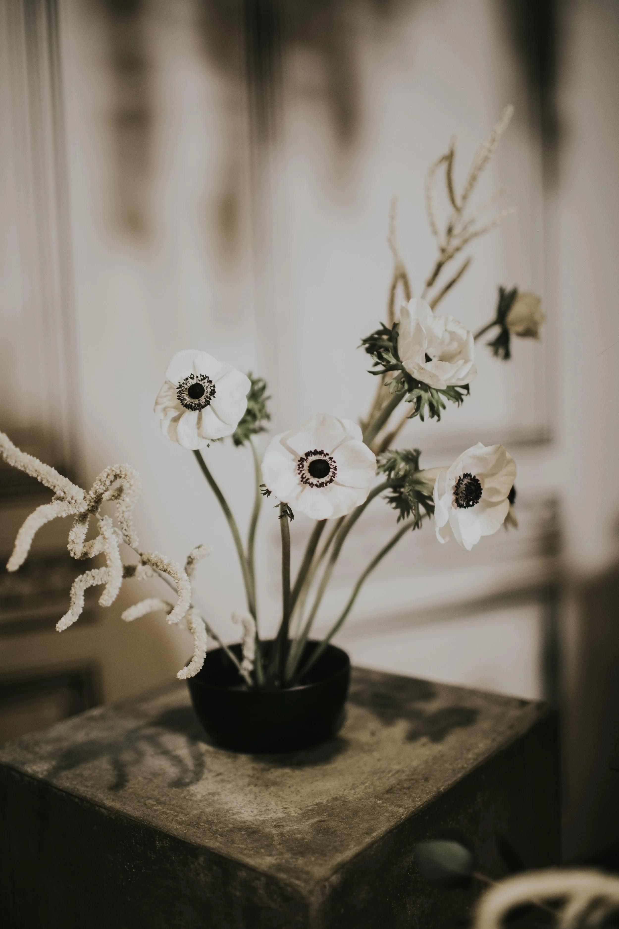 Understated and elegant flowers by Catherine Short Floral Design helped created the overall look. Both the single stems of Anemones and the hanging installation look divine. As does the bouquet of all white Genista florals.